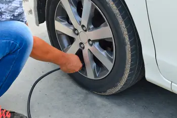 - Fill your tires to the manufacturer’s recommended air pressure, which is located on a sticker in the driver side door panel.